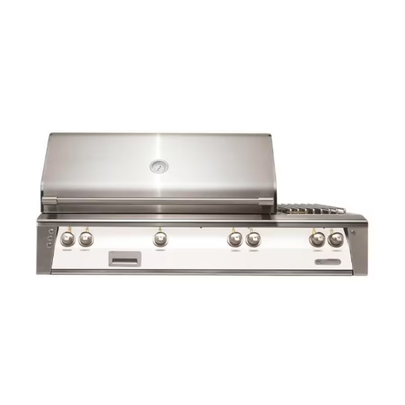 Alfresco ALXE 56-Inch Built-In Natural Gas Deluxe Grill With Sear Zone, Rotisserie, And Side Burner in Signal White Matte – ALXE-56SZ-NG-SM9003