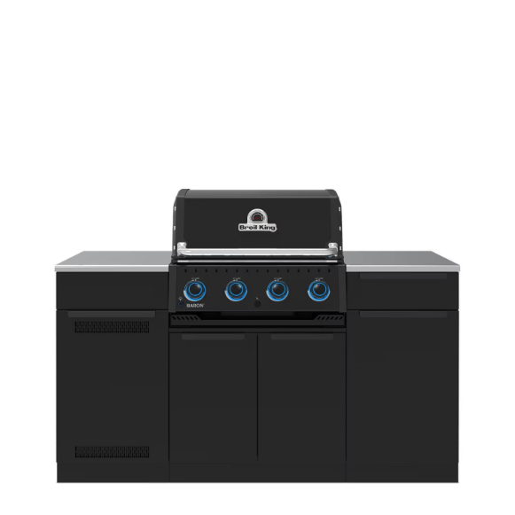 Broil King Baron 590i Shadow 5 Burner Propane Grill Center w/ Rotisserie Kit & Side Burner – Black – 876844