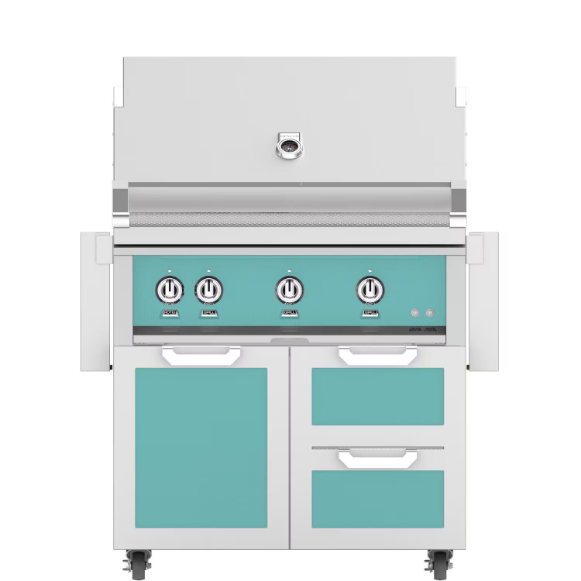 Hestan 36-Inch Natural Gas Grill W/ Sear Burner & Rotisserie On Double Drawer & Door Tower Cart – Bora Bora – GMBR36-NG-TQ