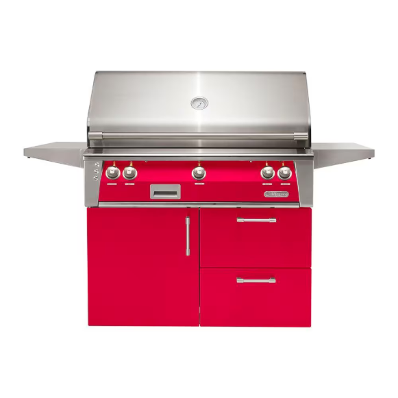 Alfresco ALXE 42-Inch Freestanding Natural Gas Grill On Deluxe Cart With Sear Zone And Rotisserie in Raspberry Red – ALXE-42SZCD-NG-S3027