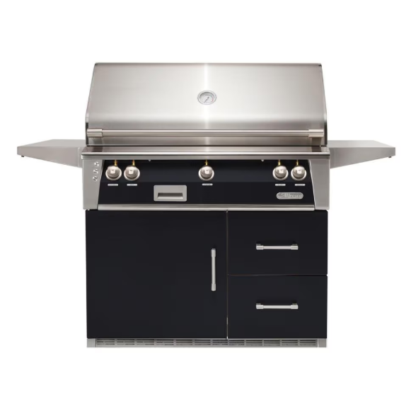 Alfresco ALXE 42-Inch Freestanding Natural Gas Grill On Refrigerated Cart With Sear Zone And Rotisserie in Jet Black Gloss – ALXE-42SZRFG-NG-S9005