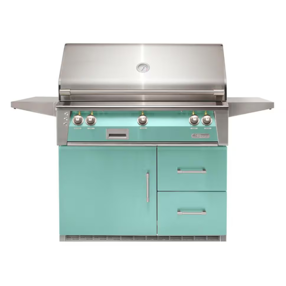 Alfresco ALXE 42-Inch Freestanding Natural Gas Grill On Refrigerated Cart With Rotisserie in Light Green – ALXE-42RFG-NG-S6027