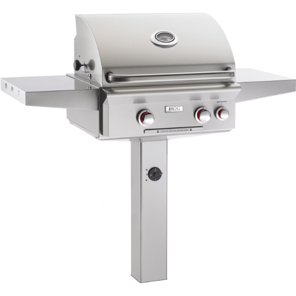 American Outdoor Grill T-Series 24-Inch 2-Burner Propane Gas Grill On In-Ground Post With Rotisserie – 24PGT