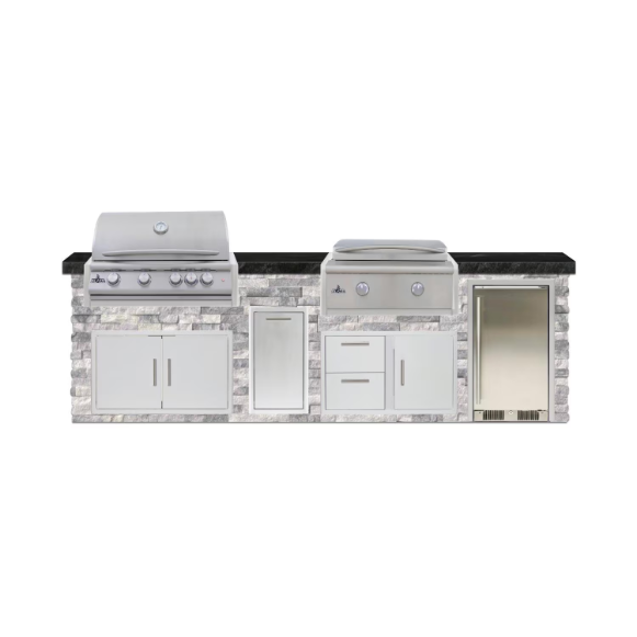 BBQGuys Signature 10 Ft Outdoor Kitchen Island w/ 40 Inch Natural Gas Blaze LTE+ Grill , Sink & Double Trash Bin | Alaska Gray w/ Black Granite