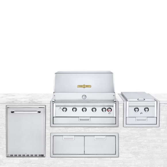 Crown Verity Infinite Series 4pc 36-Inch Propane Built-In Grill Bundle W/Refrigerator, Access Door, & Sideburner – IBI36LP