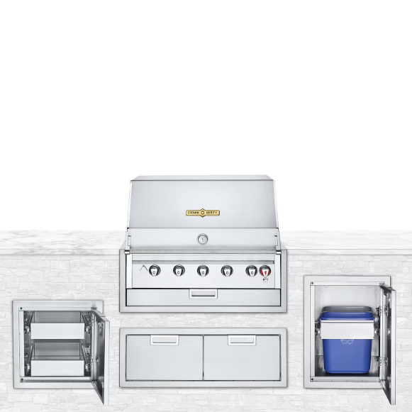 Crown Verity Infinite Series 4pc 36-Inch Propane Built-In Grill Bundle W/Large Storage Cabinet, Access Door, & Garbage Center – IBI36LP