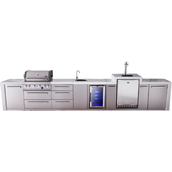 Mont Alpi Deluxe Series 15 Ft Propane Outdoor Kitchen Island w/ Side Burner, Beverage Center & Kegerator – MAi805-DKEGBEV