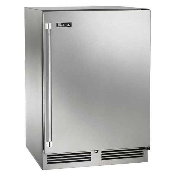Perlick 24-Inch Signature Series Shallow Depth Marine & Coastal Series Stainless Steel Outdoor Refrigerator W/ Door Lock – Left Hinge – HH24RM-4-1LL