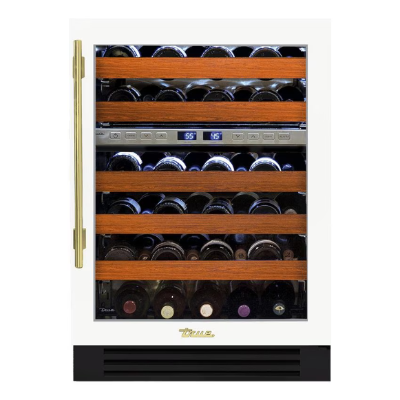 True 24 Inch 45 Bottle Right Hinge Glass Door Outdoor Wine Cabinet – Matte White w/ Brass Handle – TWC-24-R-OG-C~DSK-030-H01