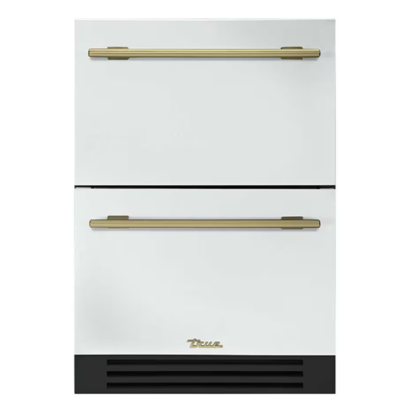 True 24 Inch 5.4 Cu. Ft. Outdoor Refigerator Drawer – Matte White w/ Brass Handles – TUR-24D-OP-C~DSK-030-H01