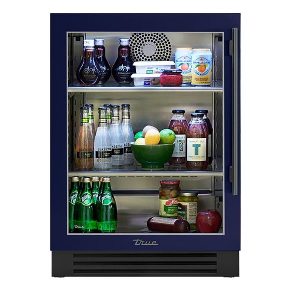 True 24 Inch 5.6 Cu. Ft. Left Hinge Glass Door Outdoor Refrigerator – Cobalt w/ Stainless Steel Handles – TUR-24-L-OG-C~DSK-078-H04