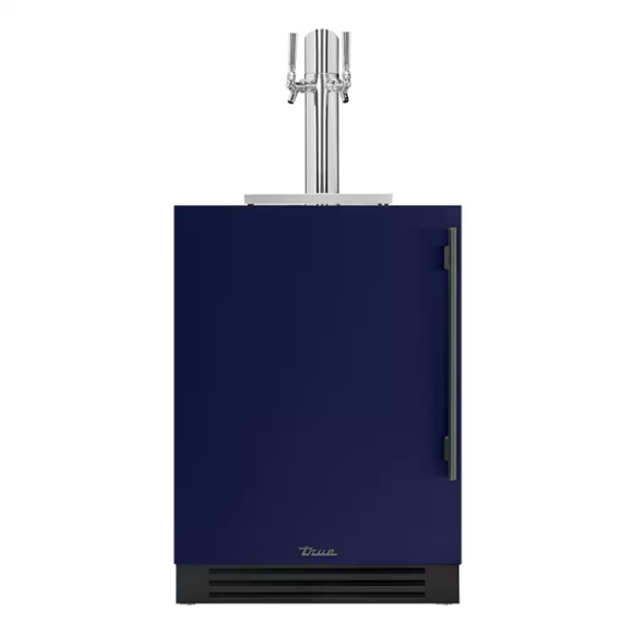 True 24 Inch Left Hinge Outdoor Dual Tap Beverage Dispenser – Cobalt w/ Brass Handle – TUR-24DD-L-OP-C~DSK-078-H01