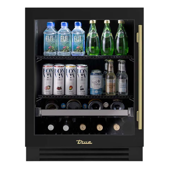 True ADA Height 24 Inch 105 Can 12 Bottle Left Hinge Glass Door Outdoor Beverage Center – Matte Black w/ Brass Handle – TUBADA-24-LG-A~027-H01