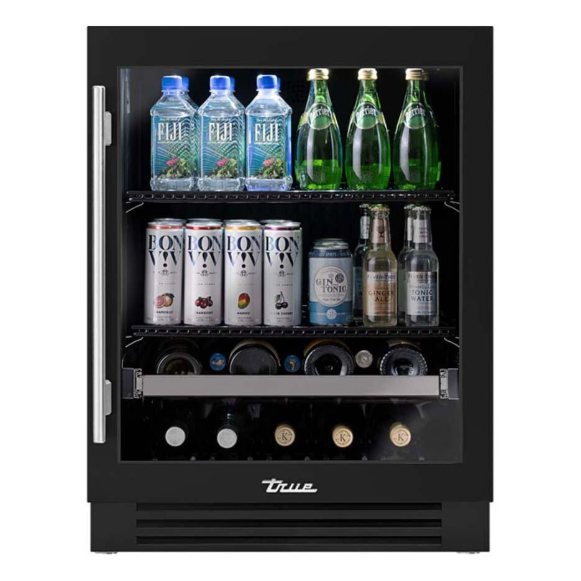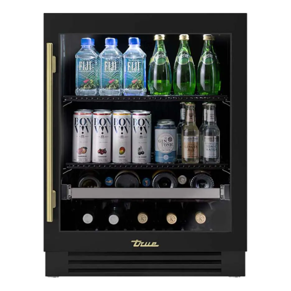 True ADA Height 24 Inch 105 Can 12 Bottle Right Hinge Glass Door Outdoor Beverage Center – Matte Black w/ Brass Handle – TUBADA-24-RG-A~027-H01