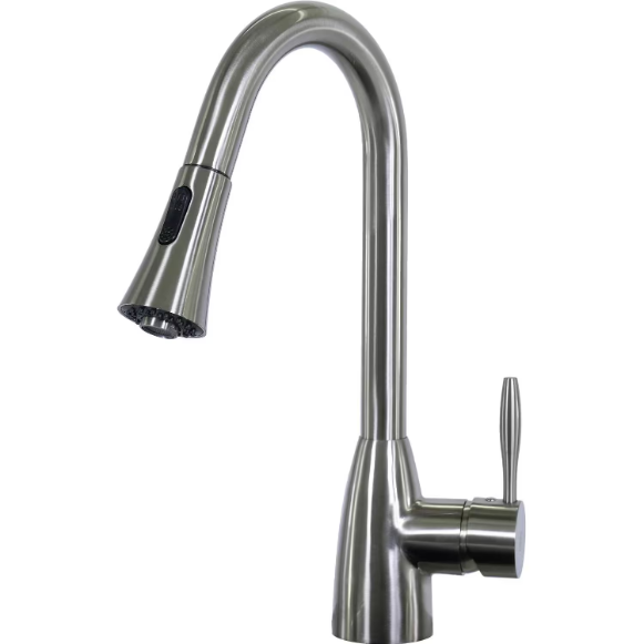 BBQGuys Signature Single Handle Pull-Down Gooseneck Hot/Cold Faucet – Brushed Nickel – BBQ-N88402-BN