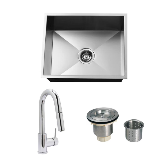 Urban Place Zero-Edge 24 X 19 Stainless Steel Outdoor Sink with Huntington Brass Dual Spray European Style Pull Down Faucet, Grid and Strainer Basket