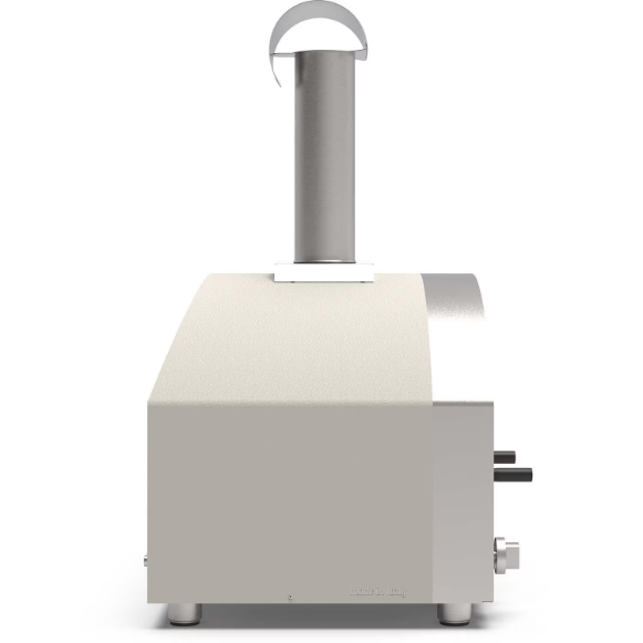 The Futuro 2 Pizze natural gas in white stone is perfect for small backyards, balconies or anywhere space is at a premium.Very stylish and great for cooking pizza, bread, roasts, grilled meats, foods cooked in crockery, desserts and everything else you love to cook in a traditional ovenThe oven is available in either a wood or gas version. Thanks to the available hybrid kit you may choose to cook with wood in your gas oven.