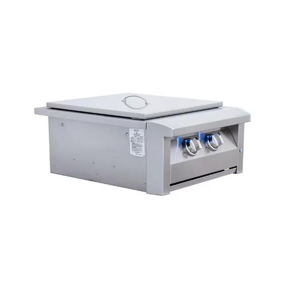 Bring a little bit of your indoor kitchen outdoors with this natural gas power burner! The American Renaissance Grill by RCS ASB3 is made in the USA and constructed of 304 stainless-steel for maximum strength and stability. This side burner features one solid brass inner burner measuring at 24,000 BTUs, and a stainless-steel outer burner measuring 36,000 BTUs for a whopping total of 60,000 BTUs! The blue LED lights over your control knobs make sure you will not have any problem setting your flame in the evening. This burner also features heavy duty stainless-steel cooking grates with a removable wok-ring for cooking with round bottom pots, pans, and woks – making it perfect for sauces or dips. This power burner also comes with a removable lid to protect the burners when not in use. A transformer is included; however, it does not include gas connections.