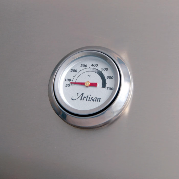 Enjoy a premium grilling experience with the Artisan Professional Series. Made in the USA from 304 stainless steel, the 32-Inch ARTP-32C-LP freestanding propane gas grill features a seamless welded double-walled hood for exceptional heat retention, as well as a full length handle and an easy-open spring-assisted system. Three stainless steel tube U-burners each produce 20,000 BTUs, which evenly distribute high heat across the cooking surface. Electrical wires and connectors are also encapsulated with heat-resistant silicone, making the 110v electrical ignition system fast and reliable, while fully-adjustable brass valves ensure precision flame control. The 15,000 BTU ceramic rear infrared burner coupled with the heavy-duty rotisserie motor ensure smooth turning and consistent heating for perfectly rotissed foods. The stainless steel cooking grates are durable and easy to clean, and the dual-position warming rack lifts up and out of the way when not in use for additional workspace. Providing protection from the elements and helping maintain the beauty of your grill, the control panel is recessed, keeping chrome knobs and switches out of the way. Experience more comfortable grilling with the unique Artisan air curtain chimney design, keeping controls cool to the touch, even with lid closed. For added visibility when grilling in low-light conditions, the Professional grills feature a convenient interior halogen work light with removable lens for easy maintenance. The matching 304 stainless steel cart features two side shelves, spacious dual access door storage, and locking caster wheels for easy mobility.