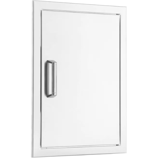 This BBQGuys Signature 18-in stainless steel reversible single access door is constructed with a 20 gauge 304 stainless steel frame and number 4 brushed finish. This door is flush mounted to create a streamlined appearance and can be hinged on either the left or right side. This access door is the perfect outdoor kitchen accessory for any outdoor BBQ island, providing storage space and access to the underside of grills and side burners. BBQGuys Signature outdoor kitchen components are designed without a logo, so you can pair them with any brand of grill or outdoor kitchen appliance. Traditional and contemporary-style handles are both included, and they require installation on this access door. Product does not include installation hardware or instructions. Door Opening Dimensions: 11 3/4 W X 20 H.