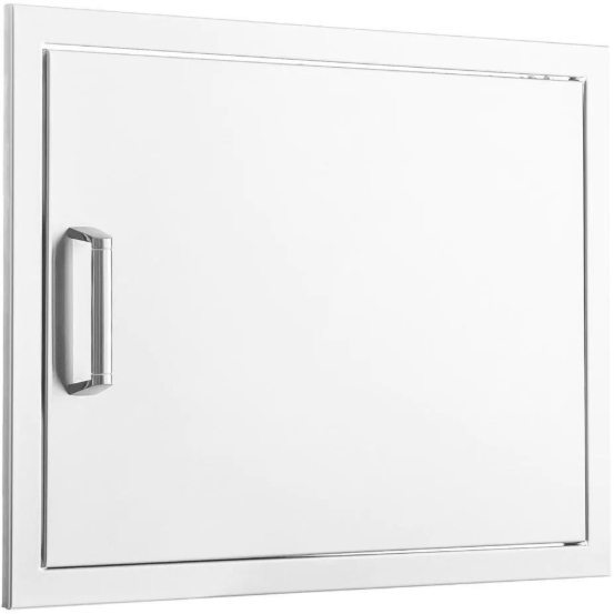 This BBQGuys Signature 28-in stainless steel reversible single access door is constructed with a 20 gauge 304 stainless steel frame and number 4 brushed finish. This door is flush mounted to create a streamlined appearance and can be hinged on either the left or right side. An access door is the perfect outdoor kitchen accessory for any outdoor BBQ island, providing storage space and access to the underside of grills and side burners. BBQGuys Signature outdoor kitchen components are designed without a logo, so you can pair them with any brand of grill or outdoor kitchen appliance. Traditional and contemporary-style handles are both included, and they require installation on this access door. Product does not include installation hardware or instructions.