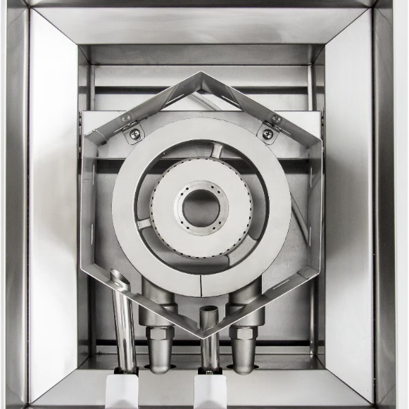 - Cast stainless steel dual ring burner with independent controls for flexible heat control