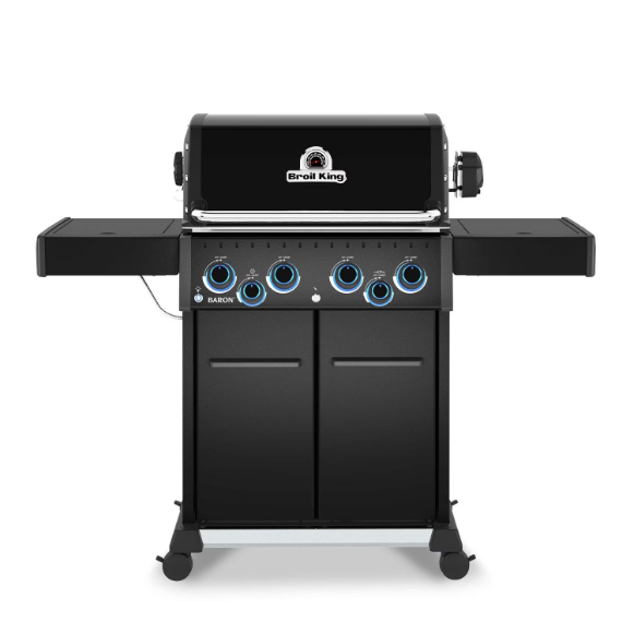 The Baron 490 Pro Shadow delivers power, versatility, and style for unforgettable backyard cookouts.With a 630 Sq. in. total cooking surface and 4 Dual-Tube burners producing 40,000 BTUs, it’s built for everyday grilling or weekend feasts. The 10,000 BTU side burner is perfect for sides and sauces, while the 15,000 BTU rear burner with premium rotisserie kit expands your menu and grilling capabilities. Durable 8mm stainless steel rod cooking grids provide outstanding heat retention and searing power, supported by a stainless steel warming rack and Broil King’s legendary stainless steel Flav-R-Wave system, which vaporizes juices and infuses them back into your food for unmistakable barbecue flavor. Along with the Shadow’s sleek black styling, convenience comes standard with illuminated control knobs, electronic ignition, and drop-down side shelves. This grill is built to last and is backed by a 15-year top-to-bottom warranty.
