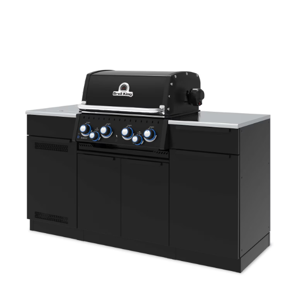 Elevate your outdoor cooking experience with the Broil King Baron 490i Built-In Natural Gas Grill Center, a blend of performance, luxury, and innovation. With a 750 Sq. in. total cooking surface and 4 Dual-Tube burners producing 40,000 BTUs, and features a stainless steel Flav-R-Wave cooking system. The 10,000 BTU infrared side burner reaches 1700℉ for rapid searing, while the 15,000 BTU rear burner with premium rotisserie kit makes roasting effortless. The reversible solid stainless steel V-Grids offer versatility, featuring a pointed side for perfect sear marks and a V-Channel side to capture drippings and juices for continuous basting. The Baron 490i Built-In Grill Center features side pods with stainless steel countertops, illuminated control knobs, and soft-close galvanized steel drawers. A cast-iron griddle is also included to expand your cooking options. Featuring a 15-year top-to-bottom warranty on the grill and a 5-year warranty on the modular kitchen pods, this grill is built to last.