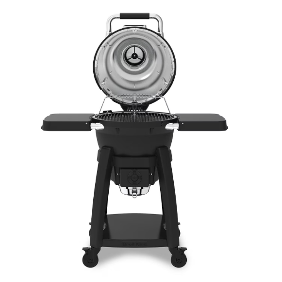 The newly designed Broil King Keg Kamado Charcoal Grill delivers a next-level fuel efficiency and heat retention with a ceramic diffuser cooking system. With 635 Sq. in. of total cooking space on two levels, it offers the flexibility to cook for any occasion. The cast aluminum firebox and lid locks in heat for consistent temperature control and moisture retention. A heavy-duty cast iron cooking grid ensures excellent heat retention, while upper and lower dampers provide precise temperature control for both low-and-slow smoking and high-heat searing. Removable resin side shelves with tool hooks add convenience, and resin handles with built-in bottle openers blend style with function. A premium thermometer ensures accurate readings, and the latch-and-lock lid keeps heat sealed in. Finished in sleek black durable steel, it’s built to last with a 15-year warranty on the cookbox, lid, and cooking grids, and a 2-year warranty on remaining parts and paint (3 years on iQue components).