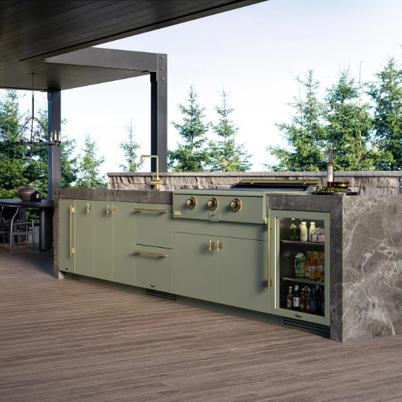 The 48 Inch Natural Gas Rockwell in Olive w/ Stainless Steel Hardware redefines outdoor entertaining with the world’s first 360-degree walk-around social grill. Created by award-winning architect and designer David Rockwell, this groundbreaking design blends architecture, hospitality, and theatrical flair to deliver an immersive cooking experience that invites connection from every angle. Designed to evoke the warmth of social gatherings – like campfires or shared family meals – this grill offers a unique 360-degree experience, encouraging interaction from all sides. Its standout feature is the retractable hood that disappears under the cooktop, allowing an unobstructed view and access during cooking, making it perfect for social settings. Seamlessly integrated into your outdoor kitchen, the Rockwell Built-in Social Grill provides a sleek, permanent cooking solution that maximizes space and enhances functionality. With powerful performance, even heat distribution, and durable construction, The Rockwell makes it easy to achieve restaurant-quality results in the comfort of you backyard. Available in a 36-, 42-, and 48-inches wide – these models offer the flexibility to optimize your outdoor kitchen space, and maximize your cooking potential. Elevate your outdoor living with a built-in grill that combines form, function, and the joy of cooking in the open air.