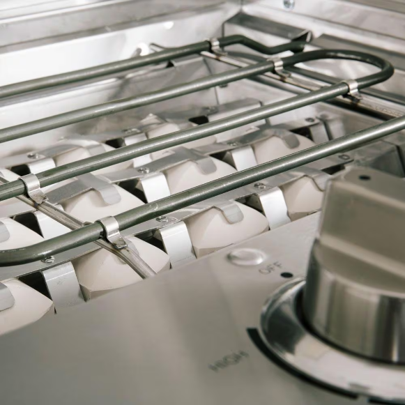 - Ceramic briquette flavorizer provides better heat distribution than standard flame tamers