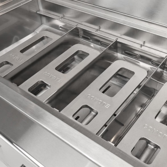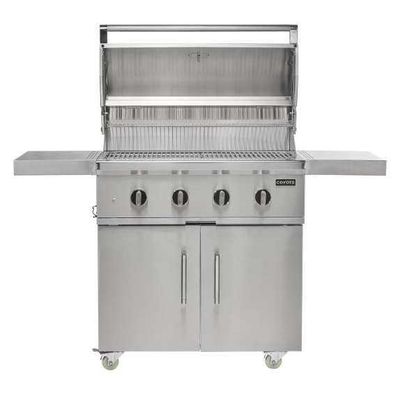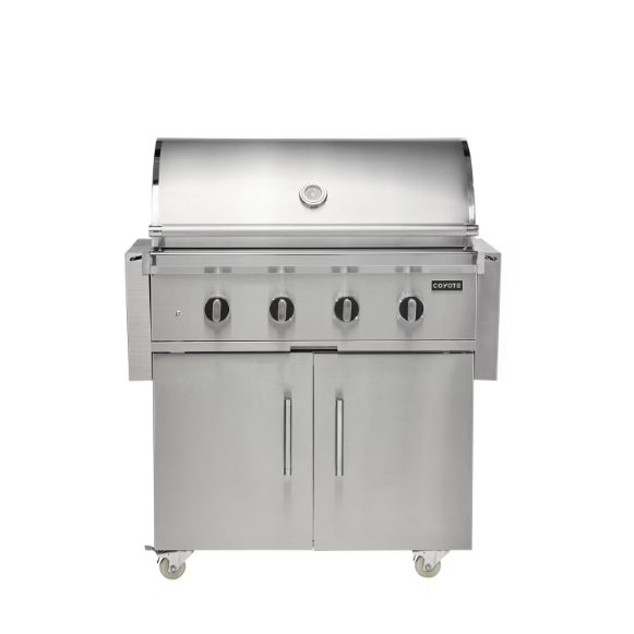 Elevate your outdoor experience with the Coyote CL-Series 36 inch freestanding propane grill. Built from premium 304 stainless steel, this grill is packed with premium features including a spring-assisted hood, interior lighting, & heat zone separators. The double walled hood provides excellent insulation, helping to retain heat more effectively. The integrated wind guard ensures consistent heat and performance, so you can keep grilling even in windy conditions. The newly updated design also includes sleek knob and bezel styling, an improved end cap, and a sturdy handle for a refined look. The stainless-steel grill cart features self-closing doors and drawer hinges, lockable casters, and a slide out shelf for propane tank storage. The four powerful Infinity burners provide a total of 80,000 BTUs of precise, even heat and are designed for optimal safety. The innovative safety valve & thermocouple system ensures safety and reliability by allowing gas to flow only when a flame is present. If the flame goes out, the thermocouple automatically shuts off the gas, preventing any potential hazards. Grill with peace of mind and enjoy outdoor cooking in your backyard for years to come.