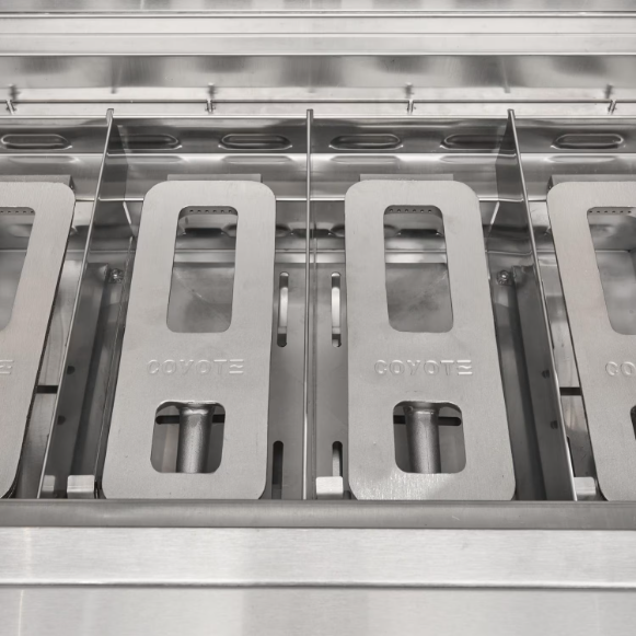 Elevate your outdoor experience with the Coyote CL-Series 42 inch built-in natural gas grill. Built from premium 304 stainless steel, this grill is packed with premium features including a spring-assisted hood, interior lighting, & heat zone separators. The double walled hood provides excellent insulation, helping to retain heat more effectively. The integrated wind guard ensures consistent heat and performance, so you can keep grilling even in windy conditions. The newly updated design also includes sleek knob and bezel styling, an improved end cap, and a sturdy handle for a refined look. The five powerful Infinity burners provide a total of 100,000 BTUs of precise, even heat and are designed for optimal safety. The innovative safety valve & thermocouple system ensures safety and reliability by allowing gas to flow only when a flame is present. If the flame goes out, the thermocouple automatically shuts off the gas, preventing any potential hazards. Grill with peace of mind and enjoy outdoor cooking in your backyard for years to come.