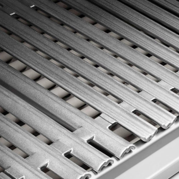 • Double-sided cast stainless steel cooking grates allow you to grill both vegetables and meats with ease