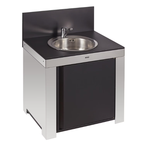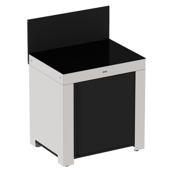 The ENO MODULO Modular Outdoor Kitchen offers a custom configure design. This Straight configuration features a 3 Burner Plancha & Plancha Module, Sink Module, Worktop Module, Storage Shelves, Drawer, and a Cleaning Kit.