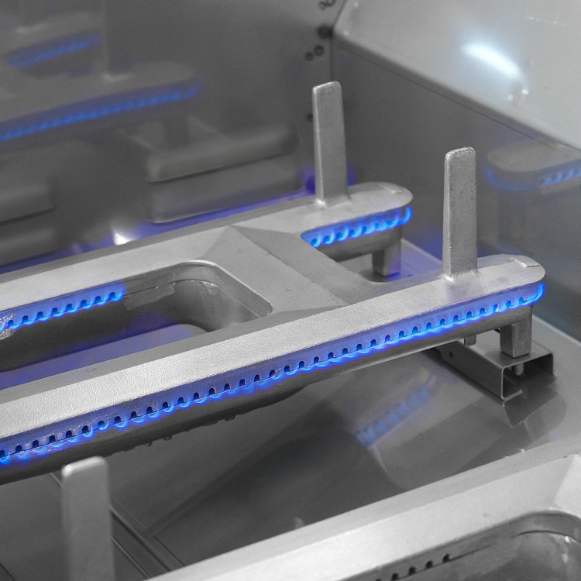 - Cast stainless steel burners are heavy and durable, featuring precision porting for more even heat