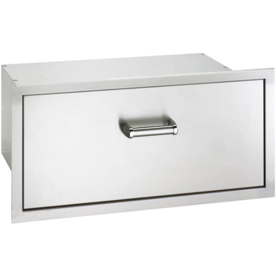 Complete your Fire Magic outdoor kitchen with their complete line of doors and drawers. This Fire Magic Premium Flush 30 Inch Masonry Drawer features sealed, double walled, foam insulated construction for a solid feel. Stainless steel mounts and a magnetic latch for secure closure are included. Drawer slides are equipped with a soft close feature that not only prevents slamming, but ensures a full and secure close every time. Fire Magic Premium doors and drawers are made of all 304 stainless steel for lasting durability and are designed to match the Fire Magic Echelon and Aurora series grills.