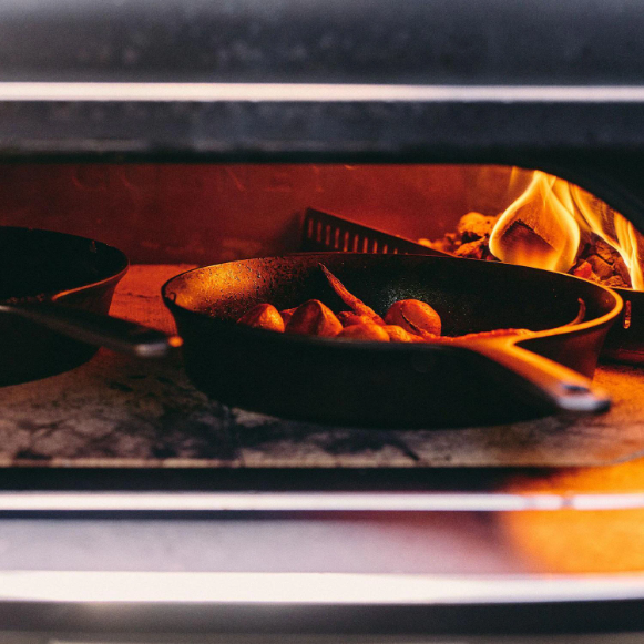 Our biggest, most versatile oven – cooks three pizzas everywhere with gas, wood, or charcoal