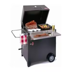 This Hasty-Bake Black Powder Coated Legacy Charcoal Grill is the original Hasty-Bake design and the most popular model. This grill can grill, bake, and smoke, giving you a variety of cooking options all in one unit. The Legacy features an 18 gauge powder coated hood and base; 523 sq inches of cooking surface; 1/4 inch diameter nickel plated cooking grids; stainless steel side and front work tables; an adjustable charcoal tray, 18 and 12 gauge galvanized steel lift and fire box; and a door on side for easy charcoal access and cleaning. 5 year warranty on parts and workmanship. 1 year warranty on finish. Grill Dimensions (in inches): 30 W x 21 D x 42 H (52 H with hood open). Front table measures 28 W x 9 D.