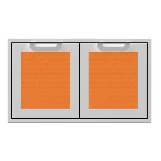 With made in the USA craftsmanship, Hestan combines the ultimate in precision performance with innovative design, delivering outdoor kitchen accessories to meet your every need. The heavy gauge welded body stainless steel construction of the Hestan outdoor storage components provides long lasting durability and the recessed Marquise accented panels with commercial grade handles perfectly matches your Heston grills. These Hestan 36-Inch Double Access Doors feature soft-close hinges that ensure quiet closure and improve longevity. This double access door features the Citra Hestan signature color finish.