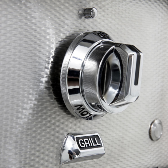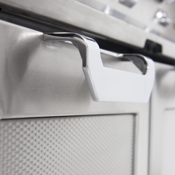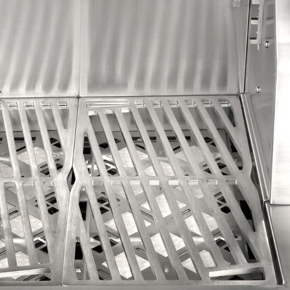 Hestan Outdoor grills combine the ultimate in precision performance & innovative design to meet the needs of every griller, from the novice to the experienced grill master. The Hestan Outdoor grill series is made in the USA with heavy-gauge welded-body construction, commercial grade end caps, Zamak die cast knobs, burner indicators & bezels and accented throughout by Hestan Marquise panels and handles. The Hestan 42-Inch Freestanding Natural Gas Grill On Tower Cart features four heavy duty 321 grade stainless steel Trellis tubular style burners that provide up to 25,000 BTUs for a total of 100,000 BTUs of high performance cooking power. Grilling surface temperatures are evenly distributed by a radiant ceramic briquette tray system. The 18,000 BTU multipurpose ceramic infrared top burner with salamander placement makes is perfect for rotisserie, broiling or finishing and includes a concealed whisper-quiet chain-driven rotisserie motor system rated for up to 50-pounds, as well as a porcelain broiling pan, rotisserie spit and forks. The laser DiamondCut 5/16-inch stainless steel cooking grates and warming rack provide 782 sq. in. primary and 282 sq. in. secondary cooking area for a total of 1064 square inches of evenly-heated grilling surface. The warming rack features three vertical positions, allowing it to be used as additional cooking area or concealed storage when not in use. This grill comes packed with many convenient features that add to your grilling experience, including the easy-open, spring-assist Horizon hood, designed to stay open at any desired height. Motion-activated Stadium halogen under-hood lighting illuminates the grilling area while the LED control panel lighting keeps your controls visible for nighttime grilling and entertaining. The symmetrical flip-to-clean radiant tray and stainless steel removable drip tray make cleanup simple, and a one-push automatic ignition system makes lighting your grill a breeze. The Hestan Double Drawer & Door Tower cart offers an abundance of storage and working space with two folding side shelves, two fully-extending soft-close drawers and a soft-close access door with recessed Marquise-accented panels & commercial grade handles. The cart interior features a pullout propane tank tray that can easily be converted for trash & recycling bin storage. Commercial-grade casters allow for smooth cart movement and 360-degree maneuverability. This grill features durable, powder coated stainless steel panels in the Hestan signature Bora Bora color finish.