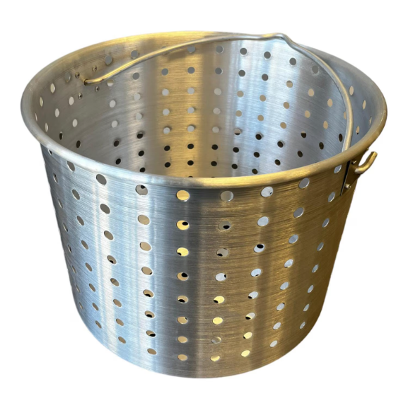 - Made from 4mm heavy duty aluminum. Large heavy handles for secure handling of pot. Full fitting basket and lid. 10.5-inch tall built-in aluminum cooker frame.