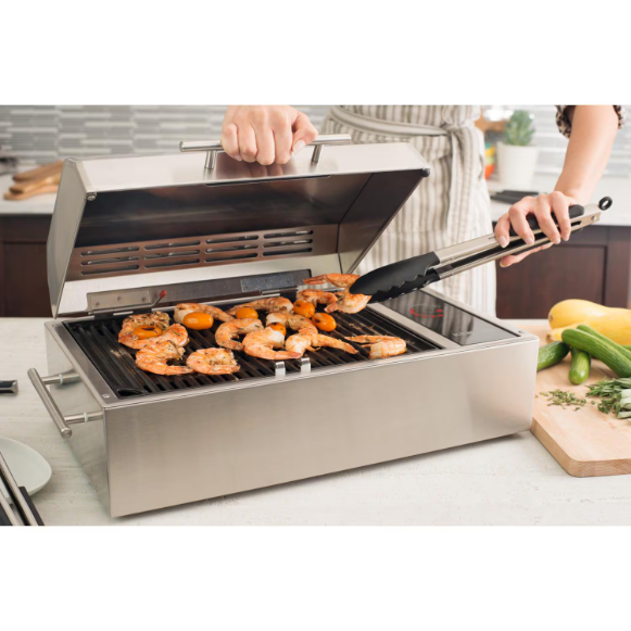 - Concealed electric element provides fire-safe, flame-free and no-smoke grilling