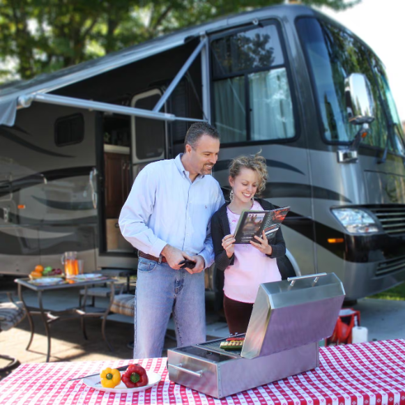 Perfect for boating, RVing and patio grilling, this electric grill allows you to take your passion for cooking almost anywhere you go! Featuring a weather and rust proof, marine grade 304 stainless steel housing, this electric grill is guaranteed to impress. The nonstick, double coated grill grate provides 155 square inches of cooking area and is made of cast aluminum for years of use. A single electric element is concealed for flare-up and smoke-free grilling. Pre-heating to a maximum temperature of 500 degrees in less than 7 minutes, this grill is quick and easy to use. Underneath the element, is a disposable drip pan that also works great for adding a variety of liquids for additional flavor. To start, simply touch the ON/OFF sensor on the digital control panel and adjust to one of the 8 heat settings using the two heat control touch sensors. On the grill lid is a stainless steel handle that remains cool-to-the-touch while cooking. The grill grate and lid are both easy to remove and dishwasher safe for easy cleanup. With an automatic shut off feature that turns your grill off after 90 minutes of being unattended, a GFCI power cord to prevent accidental electric shock, and an insulated lid that helps prevent accidental burns, this electric grill promises optimal safety. This 11 amp grill is UL approved for both indoor and outdoor use.