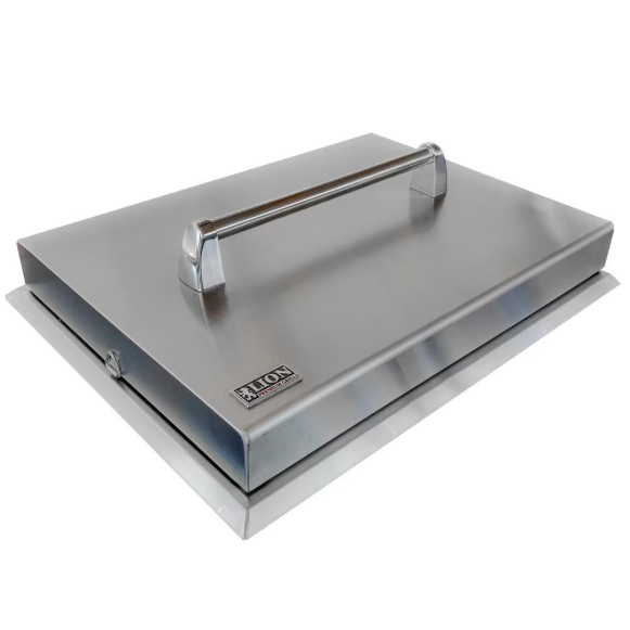 The Lion 33 x 22 inch stainless steel double access door features a convenient paper towel holder to help you keep the mess to a minimum while you enjoy your outdoor grilling area. Install this double access door into any custom BBQ island for a functional, versatile solution to easy outdoor storage.
