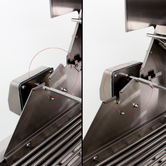 - Three-speed rotisserie with infrared burner produces slow roasted perfection