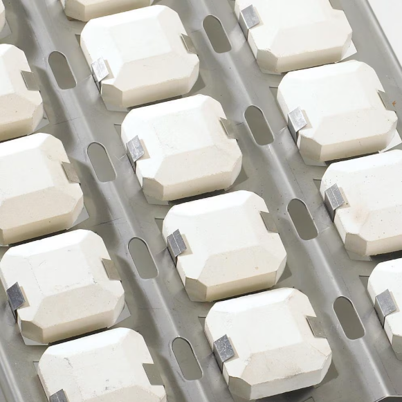 Ceramic briquette system radiates consistent heat across the entire surface of the grill eliminating hot spots