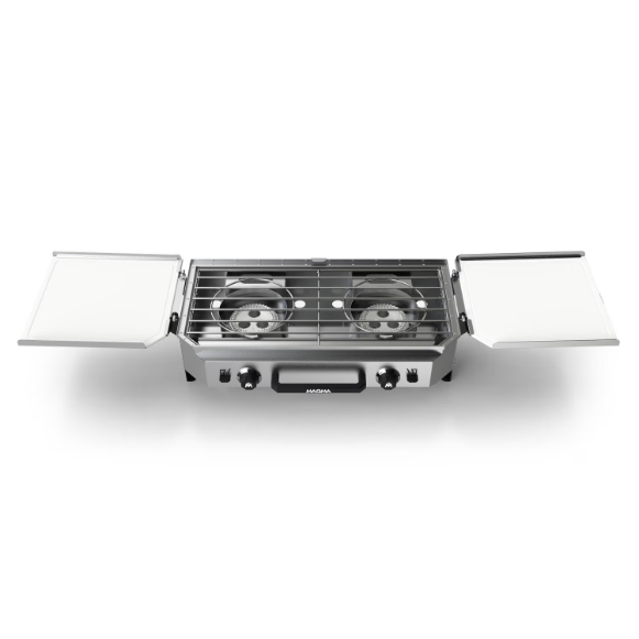 Sounds good so far, right? Well, we have even better news: around all the incredible quality and performance, Magma still found room to engineer features focused on simplifying your RV cooking experience. Perhaps most notable is the dual fold-out food preparation shelf, an indispensable touch of convenience that is rated to hold 25 lbs, locks in place, and has reinforced supports for extra confidence. Thermoplastic, heat-resistant handles and controls offer a welcome mix of durability and safety, while the included fuel hose works with standard 20-lb tanks. To top it all off, Magma received FDA approval for the removable shelf inserts, which are dishwasher-safe and feature integrated channels to control food juices. From top to bottom, the Magma Crossover Double Burner Firebox is the top choice for camp and RV kitchens seeking something more.