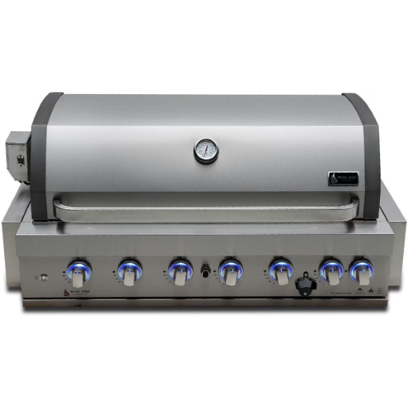The grill is manufactured using 304 stainless steel and designed to withstand the elements. The good looking grill offers 6 burners of regular cooking area along with a rear burner and heavy duty rotisserie kit for the ultimate rotisserie experience. The large L brackets and back bracket provide extra tolerance for most 6 burner cut outs. The grill comes standard with LED knobs that are blue when the grill is off and red when the grill is on, there are also two bright internal lights for precision cooking, even in the dark. Be sure to check out the useful optional accessories such as the charcoal tray and griddle. Grill comes as propane ready but can be converted to Nat gas within minutes, simply buy the additional Mont Alpi Natural gas conversion kit.
