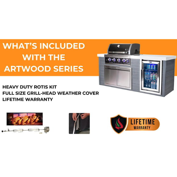 Mont Alpi Artwood Series 6.5 Ft Propane Outdoor Kitchen Island w/ 6-Burner Grill – MA805-AW
